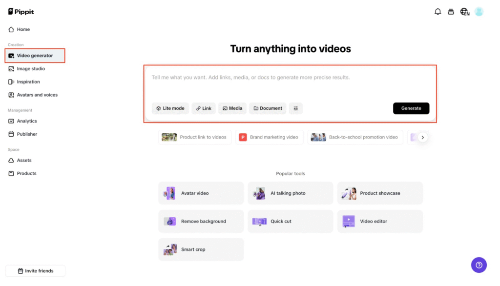 Pippit solves this by combining everything into one platform. From uploading your clips to enhancing them with AI-powered features, cropping video for different platforms, adding overlays, and publishing directly to social media, the entire workflow is seamless. You save time, reduce errors, and keep your branding consistent across every channel.