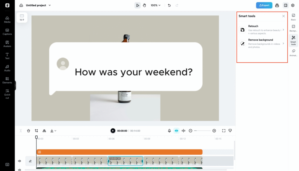 Once your base video is ready, polish it with Pippit’s AI-powered editor. Features like Auto Reframe keep your subject perfectly centered across different platforms. With Overlay, you can add call-to-action text, seasonal promotions, or branded elements. Use Remove Background to swap in a cleaner backdrop instantly, while Retouch fixes small visual flaws for a professional finish. This is where the AI lyrics generator really shines . It enhances your content without making you start over from scratch.